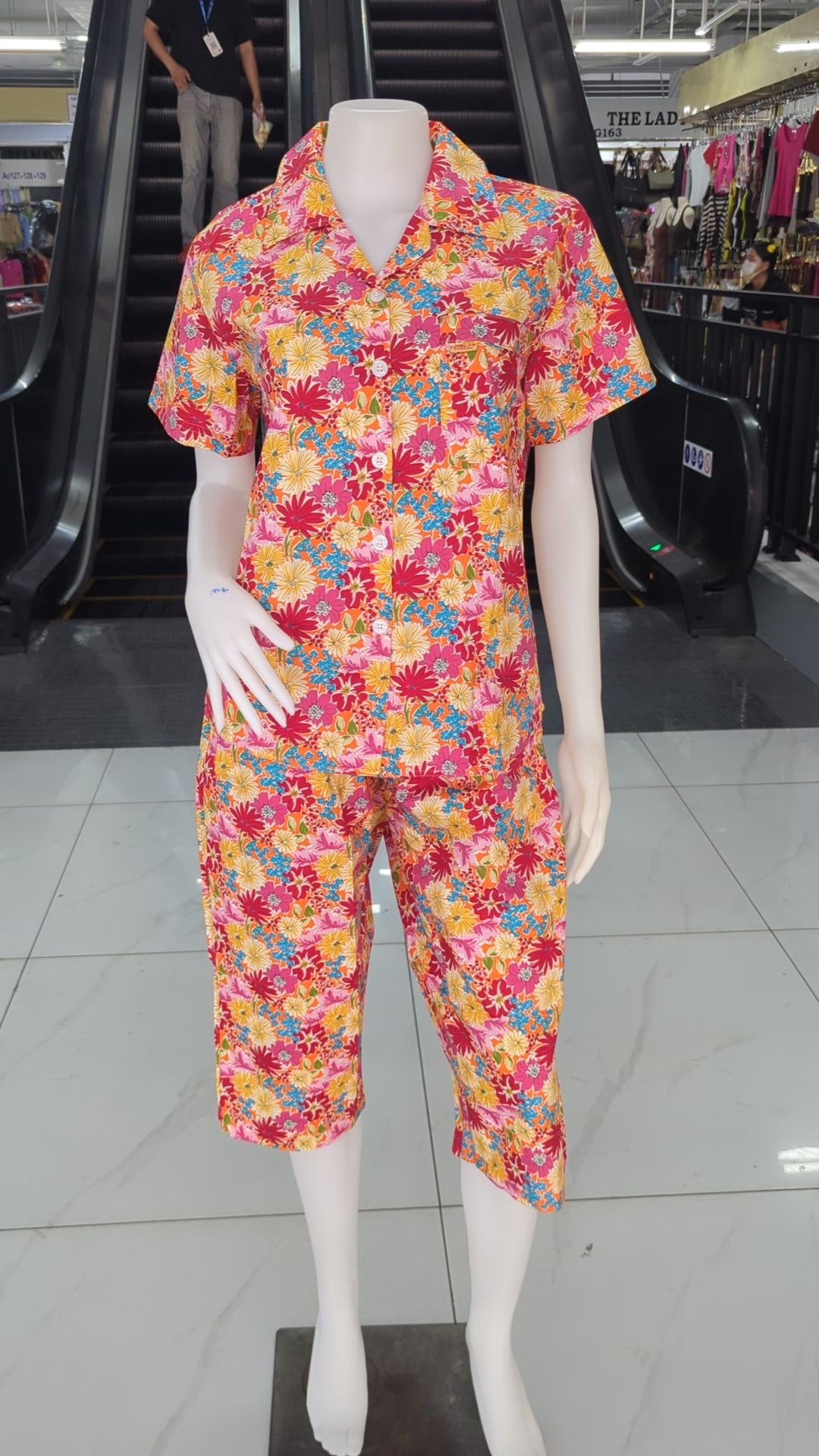 មានជម្រើសជូននារីៗយើង ដែលនិយមចូលចិត្តពាក់ឈុតផ្កាម៉ាក ធីតា ម៉ូដកបើក ដៃវែង ខោជើងវែង ផលិតពីក្រណាត់ Cotton 100% លេខ ១៖